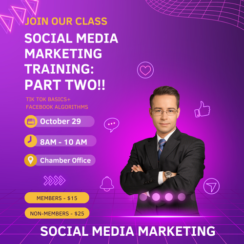 TikTok - Basics+ (how to create and grow plus relevancy), as well as Facebook- Algorithms, how to increase your reach, and how to know what is working.